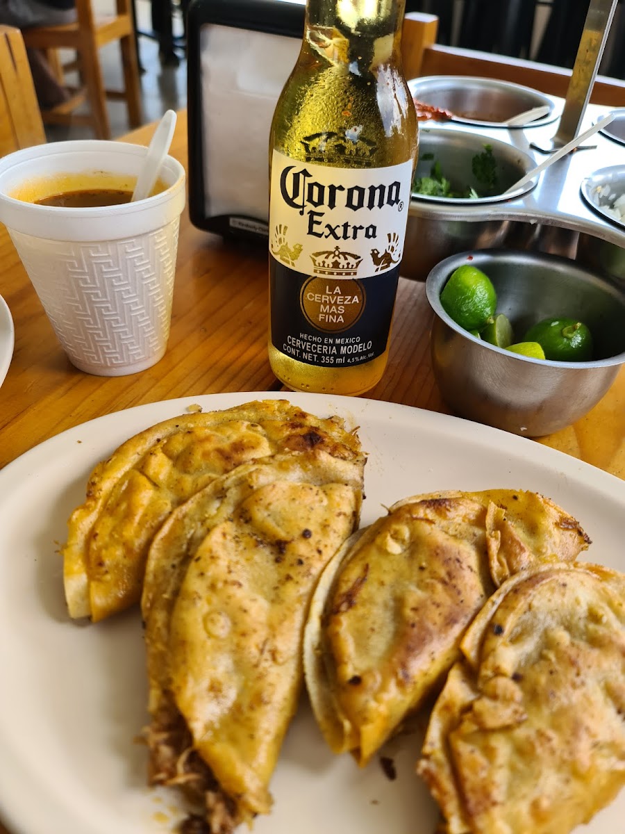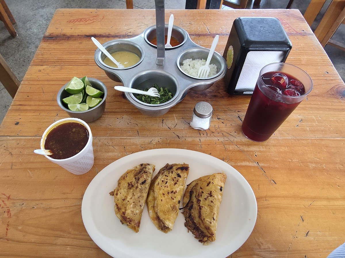 “Si te gusta la birria con buen sazón y que sepa casero, este lugar es para ti (también venden cerveza) El consomé lo sirven muy caliente, está súper rico, con ese toque picosito que no molesta, pero sí levanta. La carne está tan suave que se deshace, y tiene ese saborcito que solo se logra cuando la cocinan con calma, como debe ser. Mi top fueron las quesadillas doradas, son crujientes por fuera, con el queso bien derretido, y si les pones birria o las chopeas en el caldito… acompañas con una coquita de vidrio y ya con eso valió la pena la ida. Son de esas cosas que pruebas y dices “voy a pedir otra” El lugar es tranqui, sin mucho rollo, pero con buen ambiente. Te atienden rápido, no es caro y se siente todo muy relajado. Perfecto para cuando andas crudo, muriendo de hambre o nomás se te antoja algo calientito. Yo ya lo tengo en mis lugares top para regresar.”